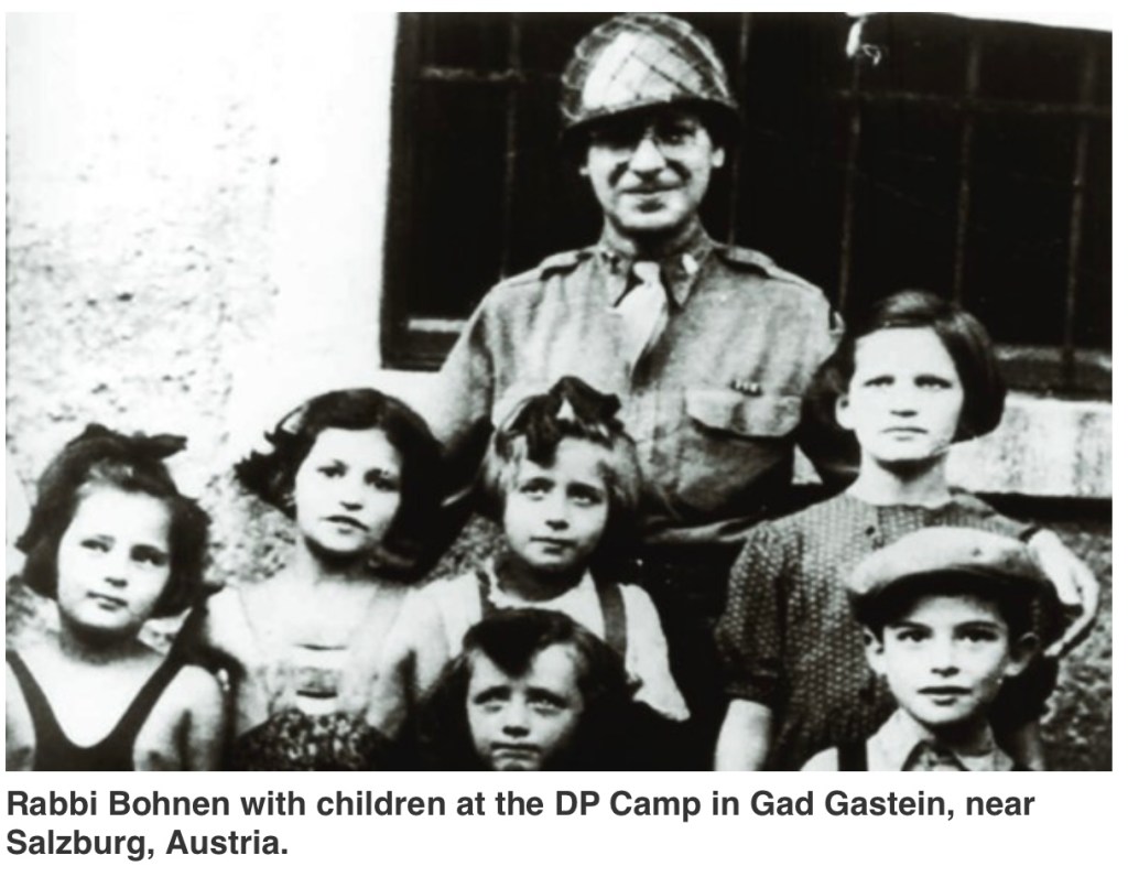 Following the end of hostilities, Rabbi Bohnen remained in Europe for nearly a year, serving as an advisor at a displaced persons camp in Bad Gastein, near Salzburg, Austria. There, he worked to support the rehabilitation and resettlement of displaced Jewish survivors.
