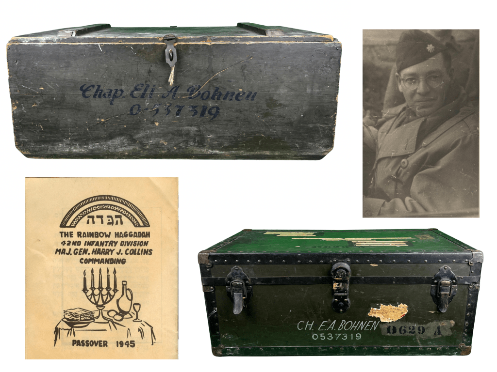 In late March of 1945, Rabbi Eli A. Bohnen led a Passover Seder in Dahn, Germany, during a two-day rest period when the town was deemed secure after the German retreat. One soldier of the 42nd Infantry Division recalled, “Now, Rabbi Bohnen looked at his Jewish calendar, and he said the next evening, which I think was either March 24th or 25th — [This was actually the 27th as the service was held on the 28th] — was going to be the first night of Passover. If possible, he would like to have some kind of Passover service.”