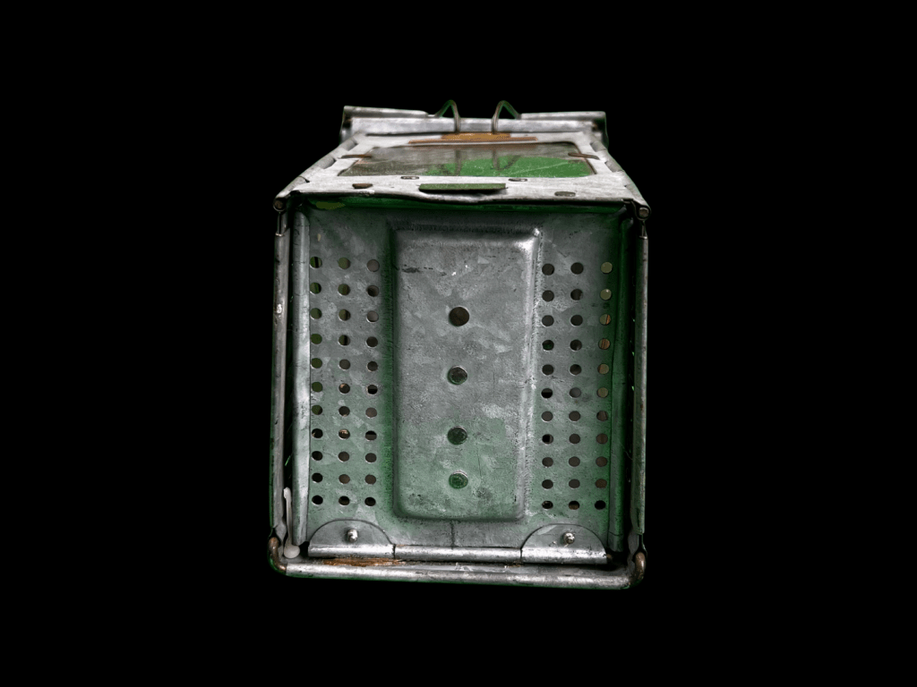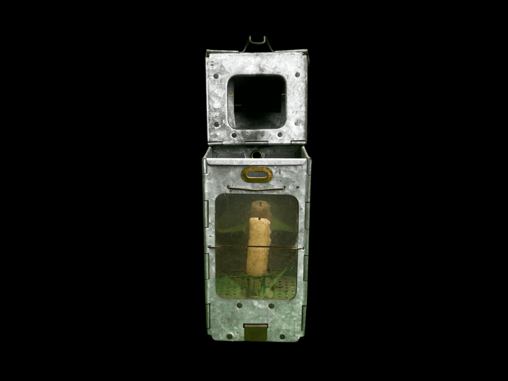 Original World War I Stone Bridge medical lantern, used by field medical personnel to provide light in aid stations, field hospitals, and during nighttime operations. Constructed with a durable metal frame and protective glass, these lanterns were designed to be portable and reliable under field conditions.