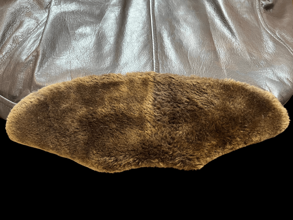 Original World War II U.S. Navy M-69F Aircraft Transport Coat, made by Gordon & Ferguson Co. Issued to Navy aircrews, including patrol and transport pilots, it was worn during long flights in extremely cold environments such as transatlantic crossings and anti-submarine missions. The M-69F was the final wartime version of the aircraft transport coat.
